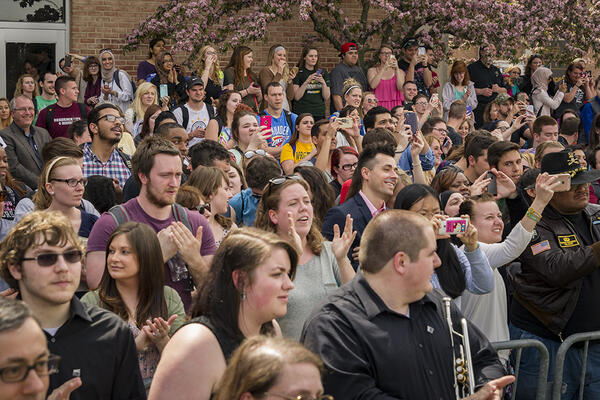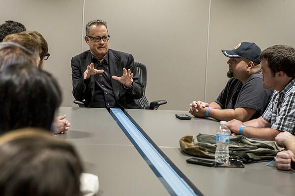 Nearly 2,000 students, faculty, staff and others turned out April 19 to see Tom Hanks and witness the ribbon-cutting for the newly renovated Tom Hanks Center for Motion Pictures.