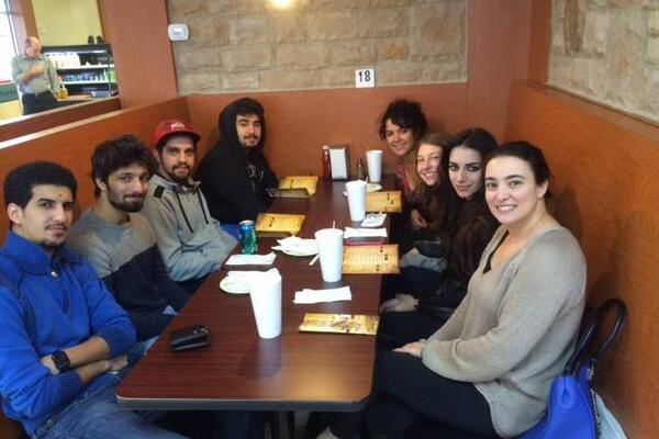 On Monday, November 16 , Amira Orr's ARA 3110 class (Arabic Conversation) went to an Authentic Middle Eastern restaurant "Yaffa Grill" where they were able to practice ordering in a restaurant in the target language in a culturally appropriate manner. The students enjoyed the different Middle