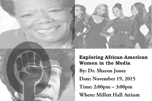 November 19, 2015 from 2:00 p.m. to 3:00 p.m in the Millett Hall Atrium Dr. Jones will present "Exploring African American Women in the Media."