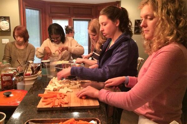 The French Club celebrated the Holiday season on Saturday November 21, 2015 at Professor Daddah's house. Professors Daddah and Abadie cooked a traditional French meal with the students. The feast included some "oeufs mimosa" (hard boiled eggs with homemade mayo), goat cheese and apple salad, French