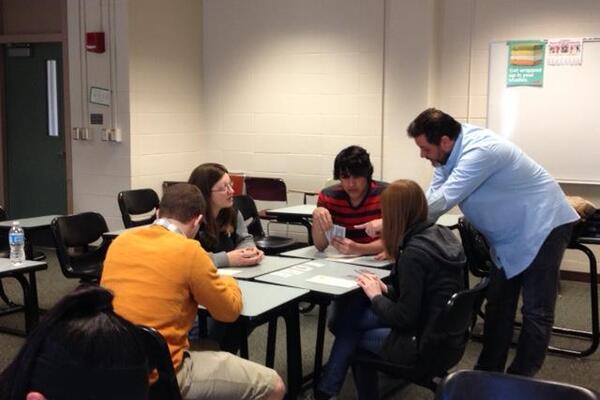 This semester, Francisco Marques-Vuelta taught members of the Spanish Club to play la escoba , a Spanish card game. Students were provided with the rules in both Spanish and English and formed groups of 4 to play. One lucky student even left the event with her very own deck of Spanish playing cards