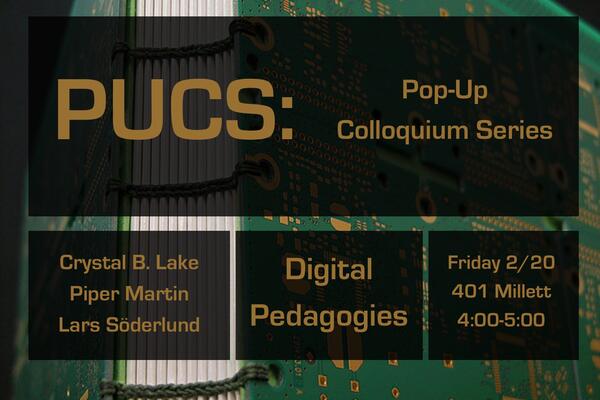 All members of the Wright State community are invited to attend the Pop-Up Colloquium on Digital Pedagogies taking place Friday, February the 20 th, from 4:00 pm to 5:00 pm, in 401 Millett Hall. This exciting colloquium will feature examples of assignments designed to take advantage of innovative