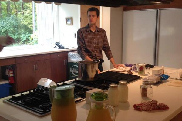 On Friday, October 10, several dozen French Club members gathered at the Rockafield Alumni Center to try their hand at cheese-making. Led by French Instructor Benjamin Hirt, the students learned how to make mozzarella cheese and caramel cream with Ben's own goat milk. A tasting followed allowing