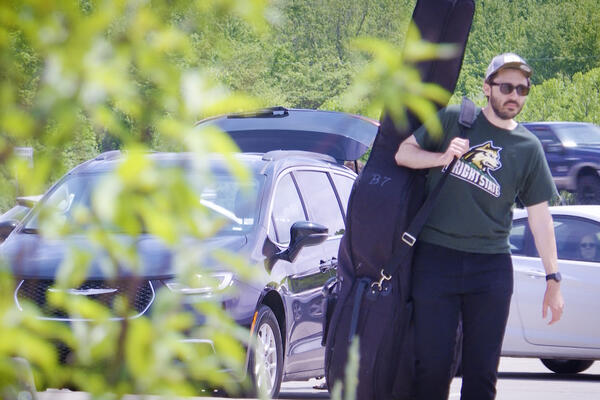 Students in the Wright State Jazz Ensemble performed for outside the busy rest stop as part of Art in Unusual Places.