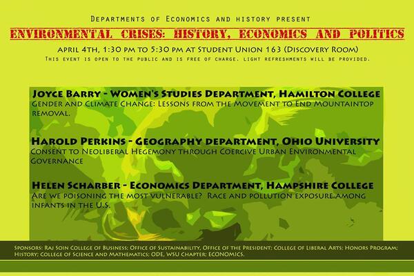 Environmental Crises: History, Economics, and Politics: An Interdisciplinary Symposium on April 4th