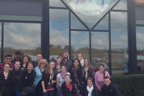 On October 18, 2013, the French Business class students visited Dorothy Lane Market, located in Centerville. They met with Calvin Mayne, VP of Dorothy Lane Market. The visit included a tour of the supermarket, delivered by Calvin Mayne in French. The students enjoyed some delicious French food