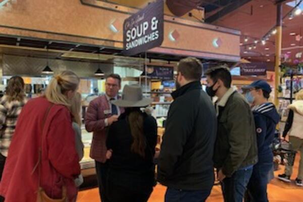 On November 4, 2021 the French Business class students visited Dorothy Lane Market, located in Centerville. They met with Calvin Mayne, owner of Dorothy Lane Market. The visit included a tour in French of the supermarket, delivered by Calvin Mayne. The students enjoyed the visit while discussing the