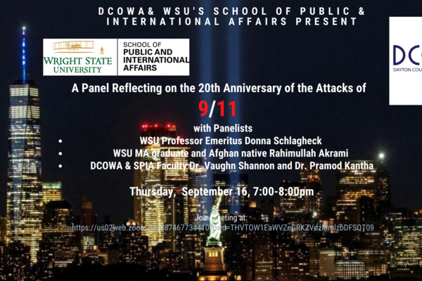 Wright State University’s School of Public and International Affairs and the Dayton Council on World Affairs are presenting a panel reflecting on the 20 th anniversary of the attacks of 9/11. Panelists include WSU Professor Emeritus of political science, Dr. Donna Schlagheck; political science