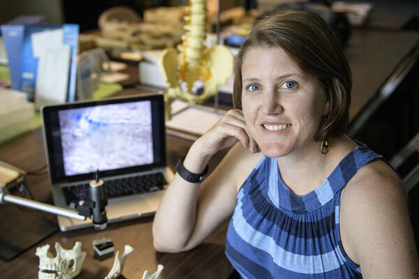 A forensic simulation exercise allows students to practice what they have learned in course taught by Amelia Hubbard, associate professor of anthropology.