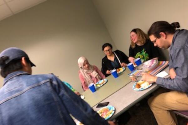 On Friday April 5, 2019, French professors Abadie and Daddah, organized a “Conversation Evening" for their French Conversation classes. They invited their students to an evening of conversation and good food. The students conversed with a group of French speaking people from Mauritania, Rwanda