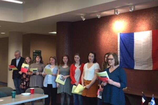 On Friday March 23, eight students were nominated for lifetime membership in the Wright State chapter of Pi Delta Phi, la Société d’Honneur Française. They met the strict scholastic requirements for membership, having a minimum GPA of 3.25 in their French courses and a minimum 3.0 overall GPA. The