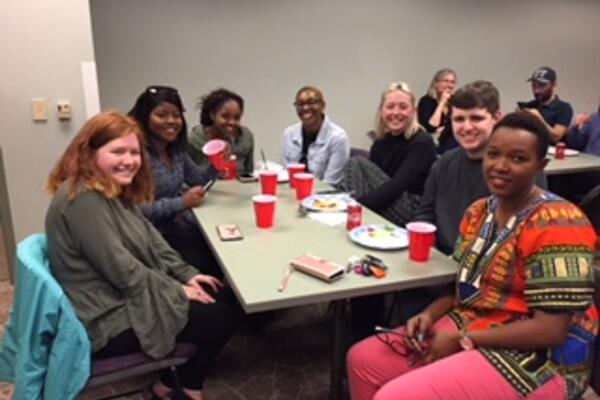On Friday March 16, 2018, professors Abadie and Daddah, organized a “Conversation Evening" for their French Conversation classes. They invited their students to an evening of conversation and good food on campus. The students conversed with a group of French speaking people from Senegal, Congo