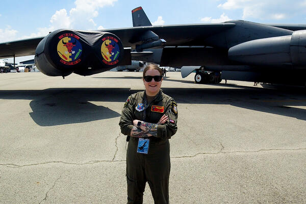 Elizabeth Bergh, a captain in the Air Force and a Wright State alum, is stationed at Minot Air Force Base in North Dakota and works as an instructor radar navigator on the B-52 Stratofortress.