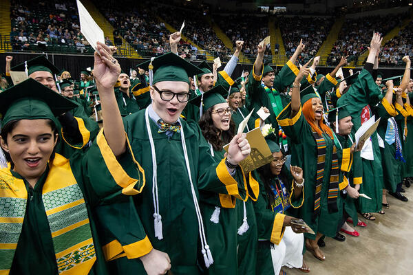 Nearly 1,500 students graduated during Wright State University’s spring commencement ceremonies in the Wright State University Nutter Center on April 26 and April 27.