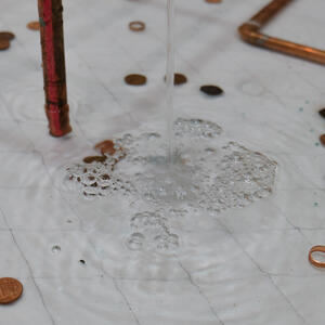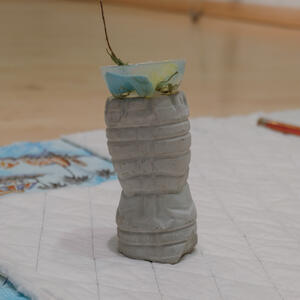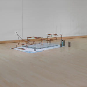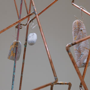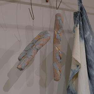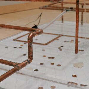 The Robert and Elaine Stein Galleries and Wright State University are proud to present KRISTEN COCHRAN—GOALS. Kristen Cochran’s recent work explores the pleasures, absurdities, and banalities of labor and the symbolic implications of laboring. Her transdisciplinary work shape-shifts in the forms of sculpture, drawings, video, and installations, and is often composed of quotidian materials such as bread, clay, clothing, shirt pockets, and copper plumbing—materials used as they relate to the gestures, needs, and aspirations of human beings at work.