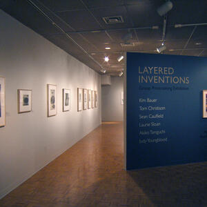 This exhibition highlights six printmakers whose unique visual vocabularies both transform peronsal content and transcend their chosen print media. They share a love of printmaking and a unique manner of visual poetry that unifies their art. They represent a segment of artists whose distinct and innovative visual inclinations present a departure from common definitions of abstraction, realism and non-objectivity. The title Layered Interventions refers to these shared aesthetic tendencies.