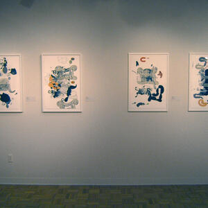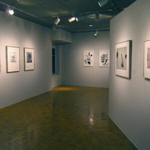 By means of traditional print processes, each artist exploits the medium's inherent capacity to layer information in uncoventional sequences, creating links between familiar forms and unfamiliar environs. These relationships are activated within skillfully positioned layers of woodcut, lithography, etching, and serigraphy, producing fertile surfaces that serve as habitat for a langugae of organic, figurative and inustrial fabrications.