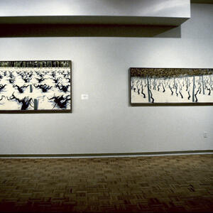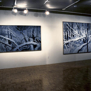 Robert Berlind's paintings offer meditative views of nature, often from unusual perspectives such as looking up through the branches of a tree or across the rippling surface of a pond. His tight balance between painterliness and restraint and his recent interest in the "moving moment" incorporate his keenness for both abstraction and reference. Organized by Wright State Associate Professor David Leach, the show of 54 paintings debuts here and will travel into 1999 to the Neuberger Museum at the State University of New York at Purchase, the Picker Art Gallery at Colgate University, Hamilton, New York, and the Herter Art Gallery at the University of Massachusetts at Amherst. The exhibition is accompanied by a 32 page catalogue with 22 color reproductions and critical comments by art critic Irving Sandler and artist Leon Golub, along with comments by the artist. The catalogue will be available for purchase in the University Art Galleries.