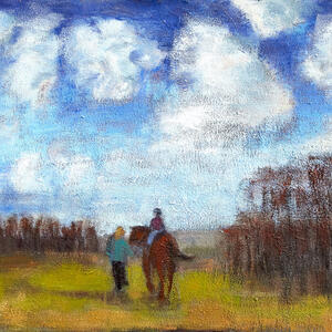 Image Credit: Early Spring (Riding Lesson), 2023, 36" x 60" Acrylic on Canvas, by Simon Carr