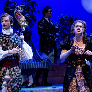 William Shakespeare's comedic romp revels in mistaken identity, witty banter, and romance.