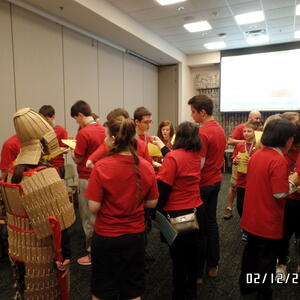 The Department of Modern Languages hosted its first Chinese Immersion Day, “认识中国 - Discover China”, on Jan. 30, 2014 in the Student Union Apollo Room. Instructors Haili Du and Maan Broadstock organized the immersion experience for 105 high school students with two years or more of Chinese language learning to celebrate the Year of the Horse and to deepen their knowledge of the Chinese language and culture. The students and their teachers represented seven schools: Bellbrook HS; Bishop Ready HS; Centerville HS; Dayton Regional STEM School; Miami Valley School; Northmont HS; and Oakwood HS. Dr. Kristin Sobolik, Dean of the College of Liberal Arts, and Dr. Marie Hertzler, Chair of the Department of Modern Languages, welcomed the students, commended them on becoming bilingual citizens of the 21st century, and encouraged them to continue language study.