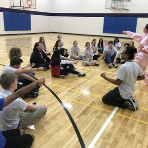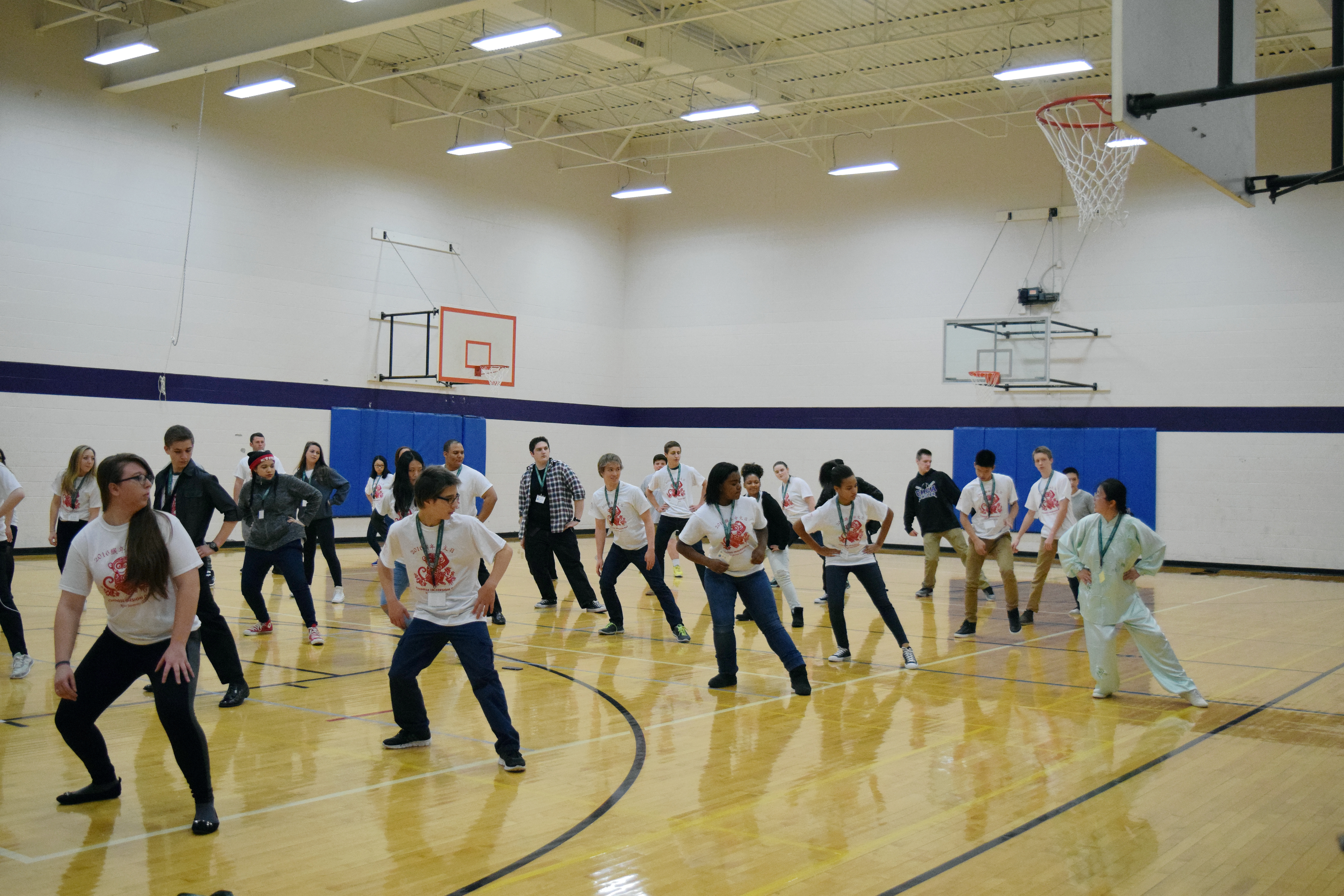 After pledging to speak only Chinese throughout the day, the students participated in breakout sessions. In the calligraphy session, students practiced painting bamboo–the symbol of spring. During the culture jeopardy session, students enthusiastically competed to show their knowledge of Chinese history and culture. The breakout session, “Character Challenge”, gave students practice with recognizing, pronouncing, and writing selected Chinese characters. For the “Let’s Communicate” game, students played a bingo game that involved the use of verbal communication skills. Tai Chi Fan Dance was a new addition to the breakout sessions where students learned a popular fan dance led by instructor Marsha Markert. Lunch was prepared by Chartwells Dining Services and included prosperity dumplings, longevity noodles, and chicken or tofu. The Lunar New Year Celebration, hosted by the Asian/Hispanic/Native American Center, followed the breakout sessions. Students from the Dayton Regional STEM School and Miami Valley School gave enthusiastic dance and martial art performances on the stage. Everyone truly enjoyed the amazing Chinese acrobat performance and had a great time visiting different cultural booths.