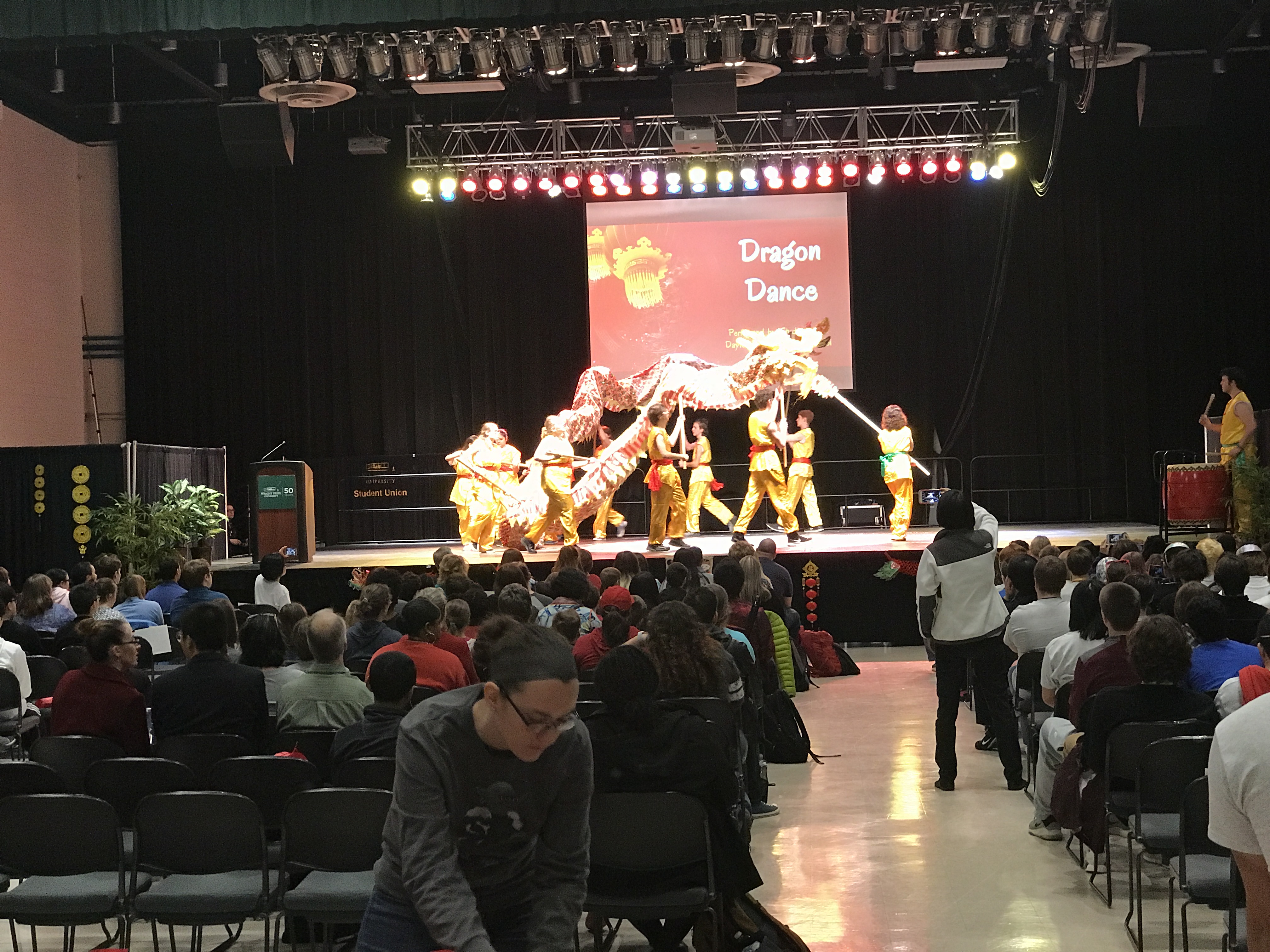The Department of Modern Languages hosted the fourth Chinese Immersion Day on January 26, 2017 in the Student Union Apollo Room. Chinese Instructors, Haili Du and Maan Broadstock, organized the immersion experience for around 110 high and middle school students with at least one year of Chinese language instruction.