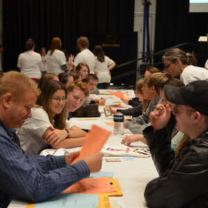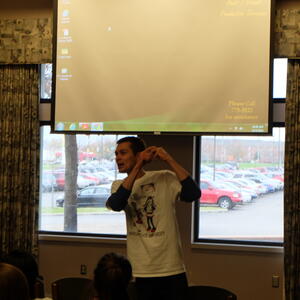 French language activities included: ice-breaking games, a flag parade, welcoming ceremonies, a Belgian-inspired lunch, and seven break-out sessions, such as a chocolate tasting, zumba, a treasure hunt, karaoke, and a trivia game based on Belgian comic books. This annual recruiting event brings top students to campus for a day of academically based engagement.