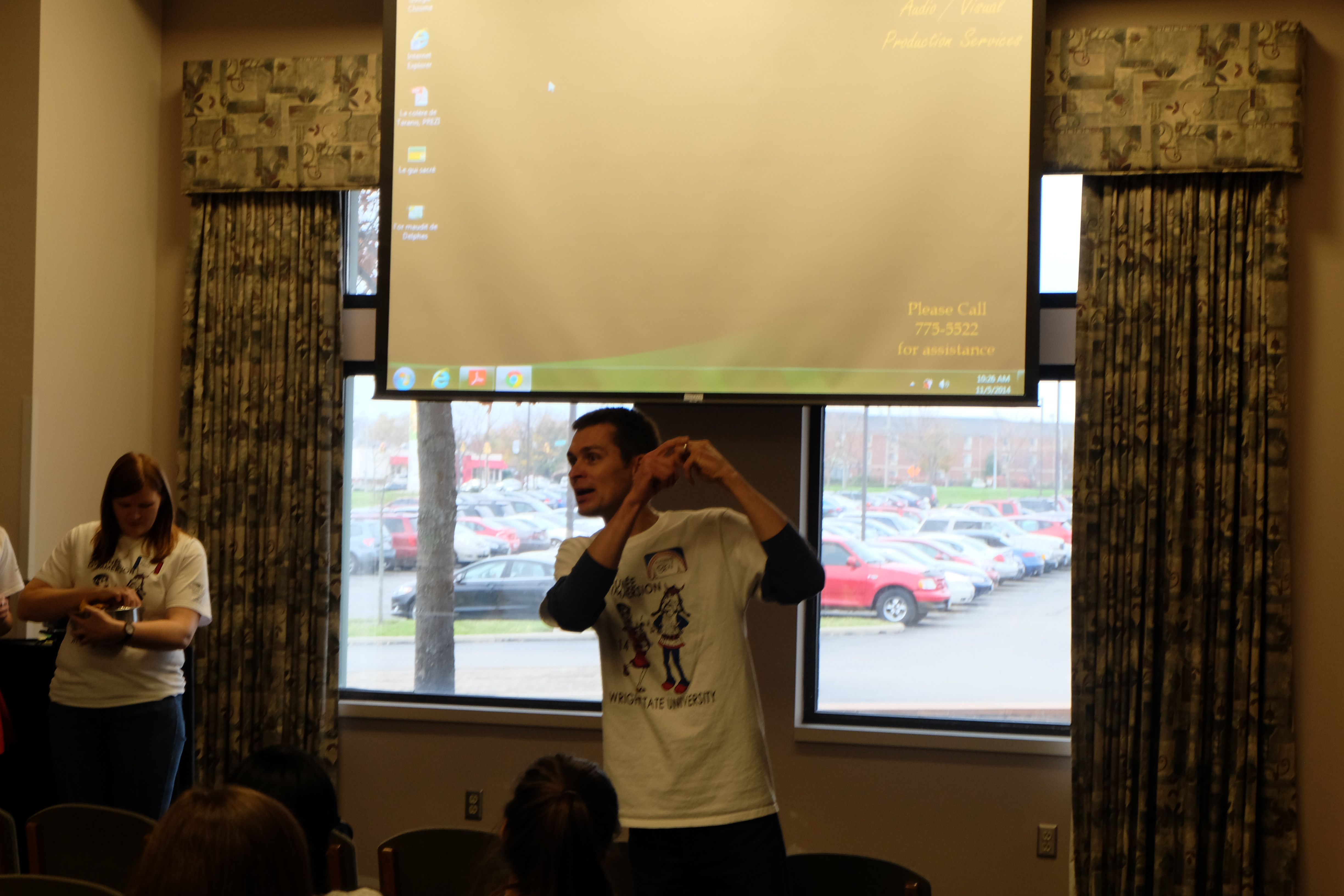Parlez-vous français? The 14th Annual French Immersion Day took place on Wednesday, November 2nd, with 296 high school students from 19 Ohio schools participating. Students and their 24 teachers traveled from as far away as Mansfield, Ohio, to attend the event! Over 75 Wright State student volunteers and students in service-learning designated courses assisted the French section in preparing and organizing the day’s events, which were centered around the theme of Belgian life and culture. Michelle Streeter-Ferrari, the Director of the University Center for International Studies - who also happens to be Belgian - was the keynote speaker, opening the ceremonies with a rousing speech on the growing importance of the French language and her personal connections to Belgium.